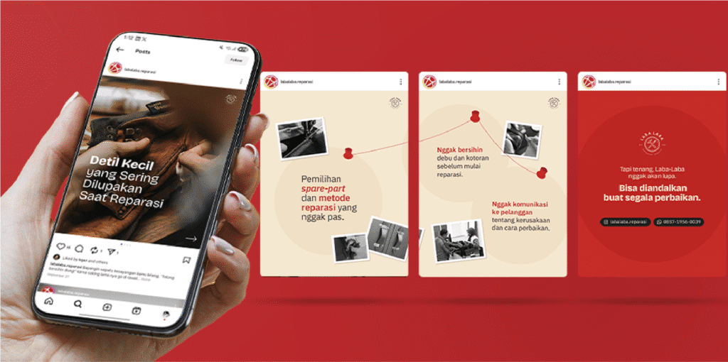 The new visual identity drew inspiration from the spider itself—a precise and adaptive builder. Each strand of a spider’s web is constructed based on space and airflow, symbolizing balance between structure and flexibility. This concept mirrors how Laba-Laba repair methods to each item’s condition with careful consideration and tailored solutions.